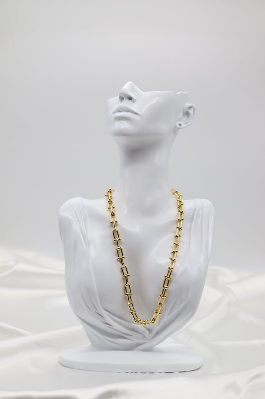 16 inch - Large Matted Gold With Black Paperclip Necklace