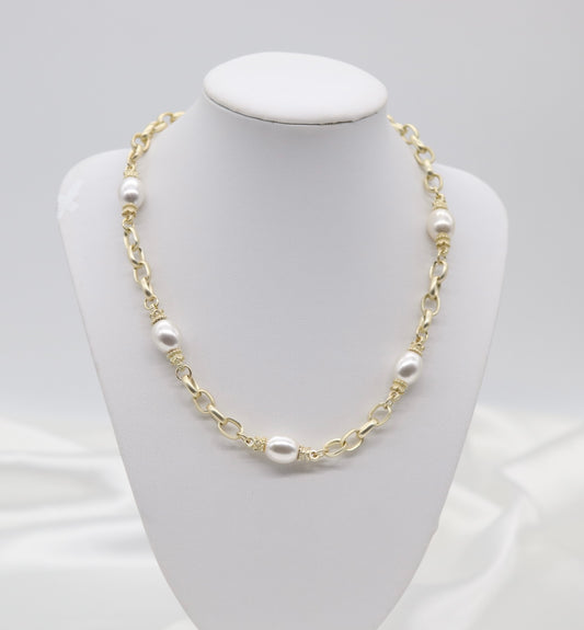 16 inch - Gold Matted Chain Necklace With Pearl Stations