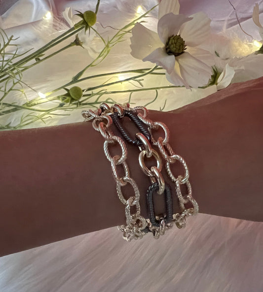 3 Layered Black Paperclip and Gold Box Chain Bracelet