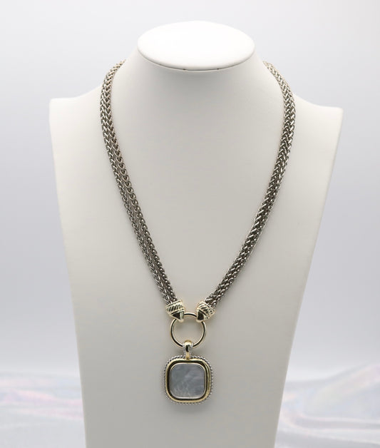 Captivating Double Layered Silver Rope Necklace With Pearl Square Pendant