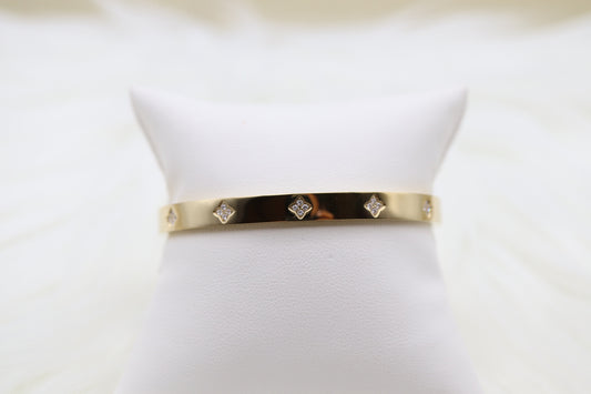 Gold Hinge Bangle Bracelet With CZ Clover Stations