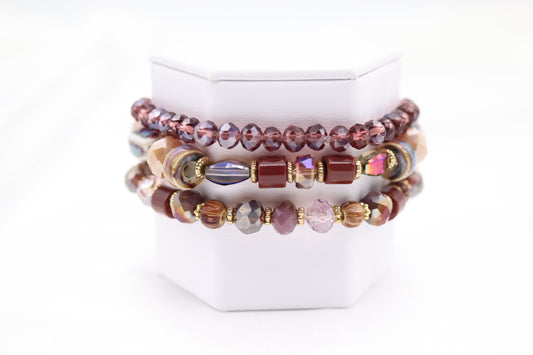 Gold Purple Plum Glass Ceramic Bead Bracelet Set