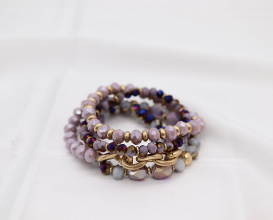 Gold Purple Glass Bead Bracelet Set