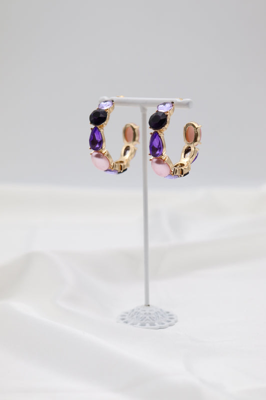 Lavender Glass Stone Hoop Earring