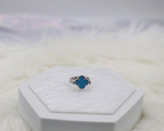 Light Blue Clover Silver Reversible Ring - Size 6