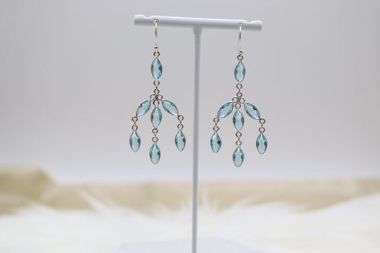 Light Blue Chandelier Sterling Silver Dangling Earrings