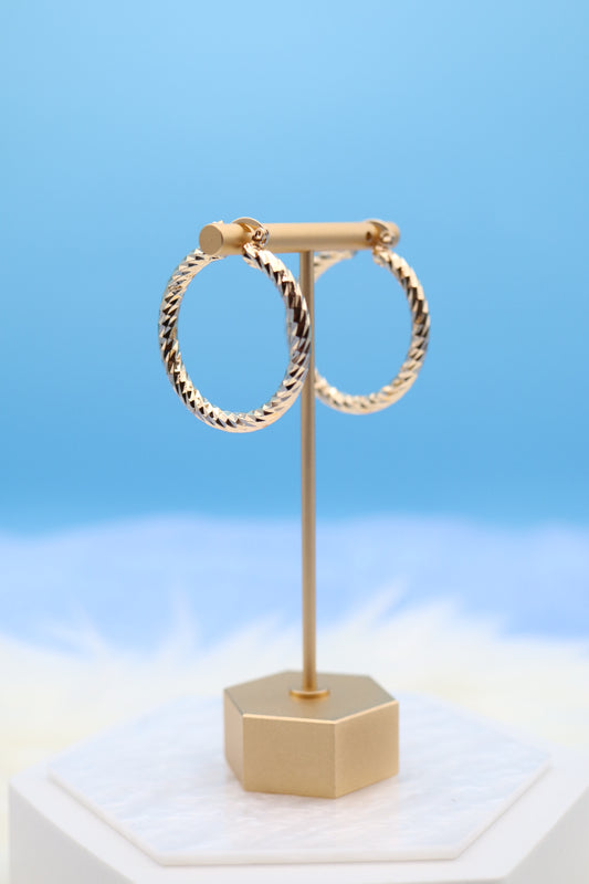 Large Textured Swirled Gold Hoop Earrings