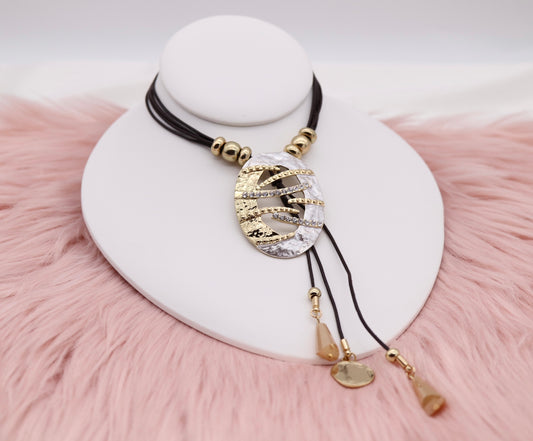 Metallic Gold and Silver Pendant With Dangling Stones and Multi Black Rope Necklace
