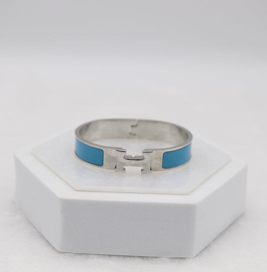 Medium Sleek Silver & Light Blue Enamel Bracelet
