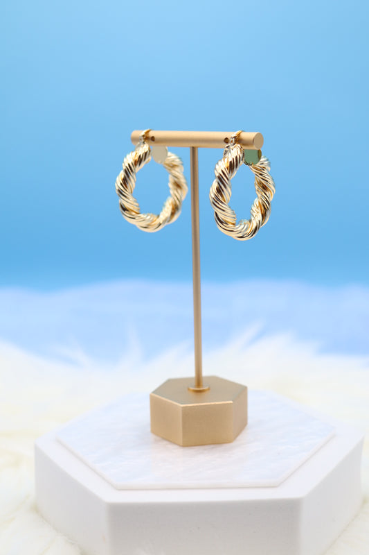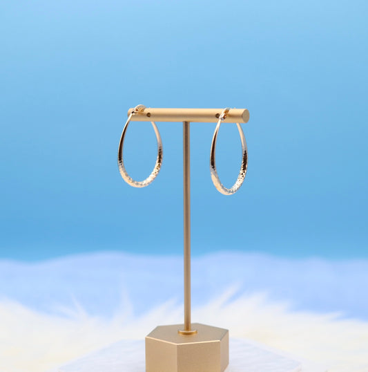 Medium Oval Diamond-Cut Gold Hoop Earrings