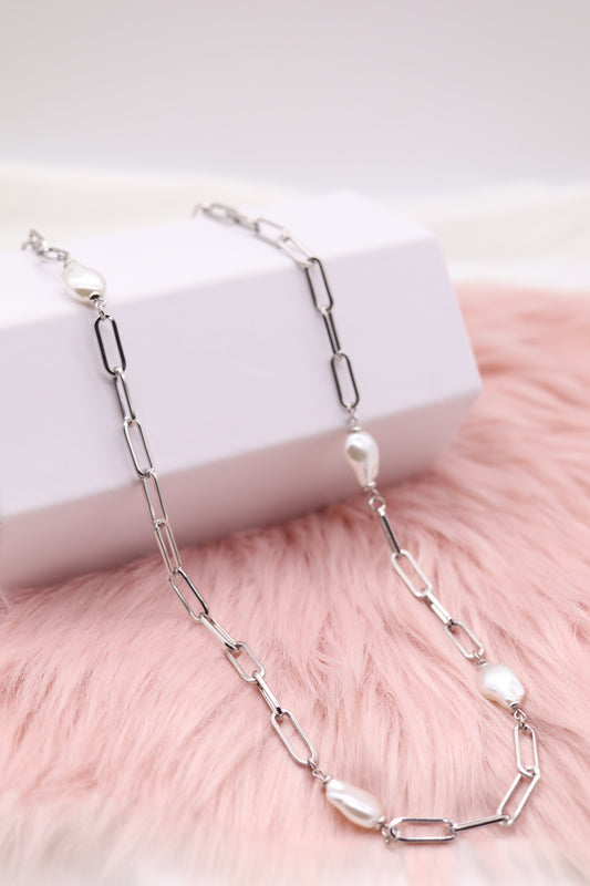 Paperclip Gold Necklace With Gold Rectangle Pendant