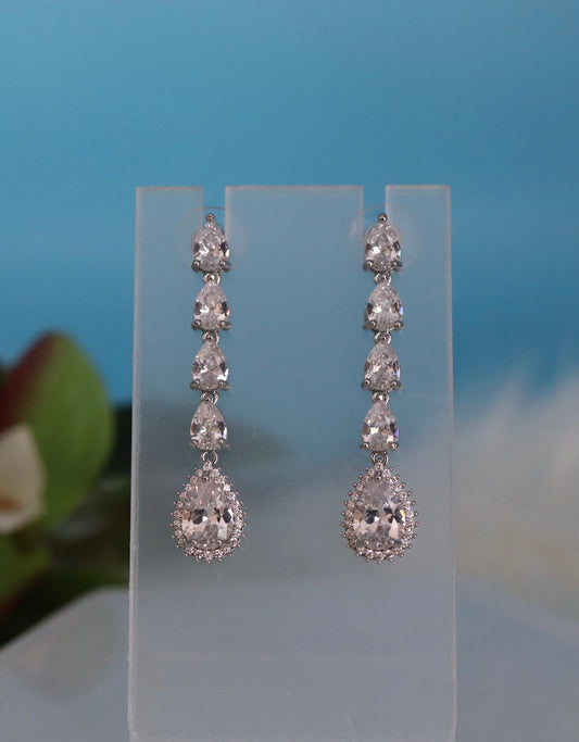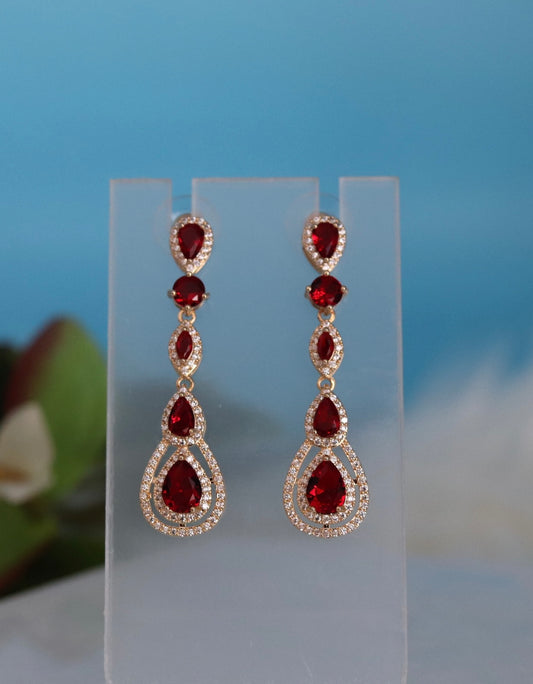 Pear Shaped Ruby Red CZ Dangling Earrings