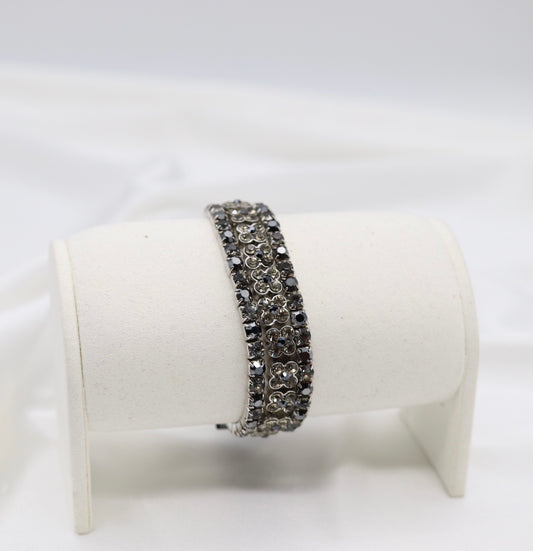 Soft Beige Clear Rhinestone Velvet Bracelet