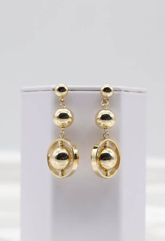 Triple Ball Dangling Gold Earrings