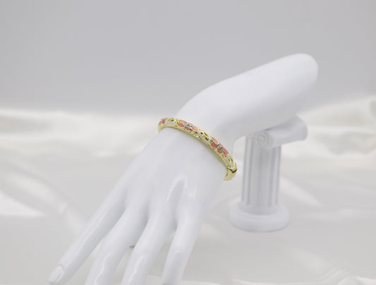 Thin Pink With CZ Station Enamel Hinged Bangle Bracelet
