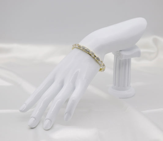Thin White and Grey With CZ Station Enamel Hinged Bangle Bracelet