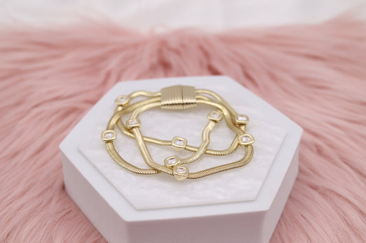 Triple Gold Snake Chain With CZ Square Stations Bracelet