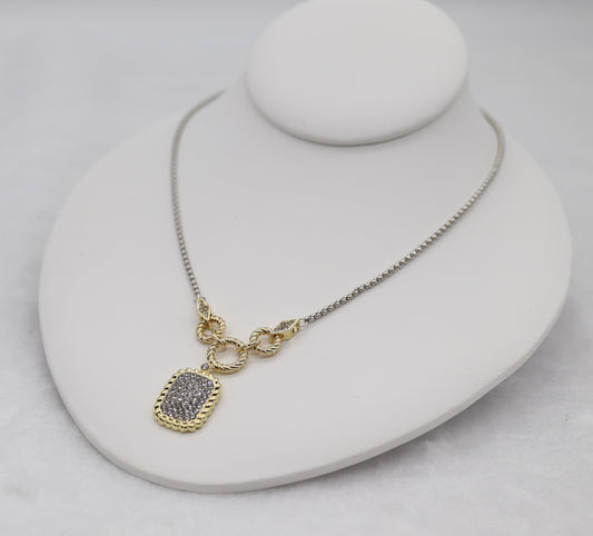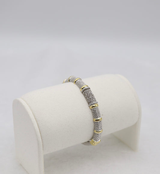 Two-Tone Cable Cuff Bracelet with Gold Crystal Accents