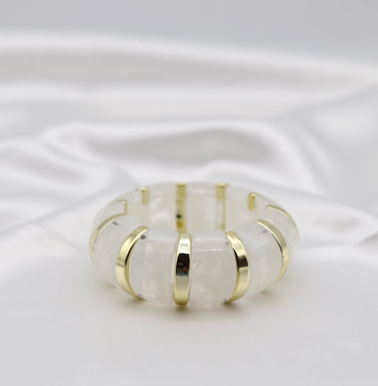 Pearl White Marble Stretch Bracelet with Polished Gold Accents