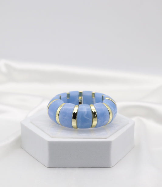 Sky Blue Marble Stretch Bracelet with Polished Gold Accents