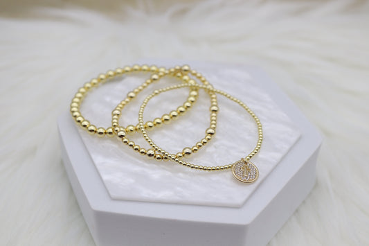 Triple Layered Gold Beaded Bracelet With Smaller Cross Dangling Pendant