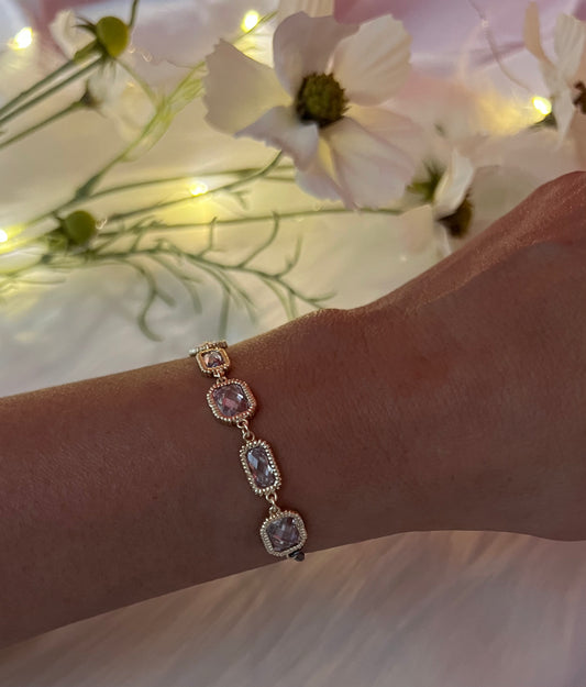 Gold Pink Big Gem Metal Strip Magnetic Bracelet