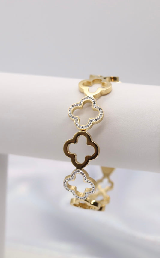 CZ and Gold Clover Cuff Bracelet