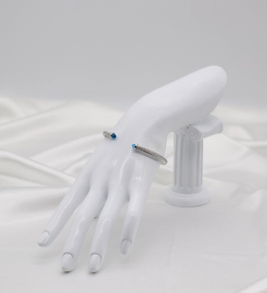 Blue 4mm Cuff Silver Cable Bracelet