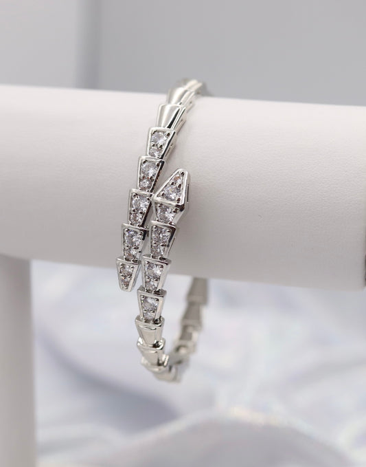 Nail CZ Cuff Silver Bracelet