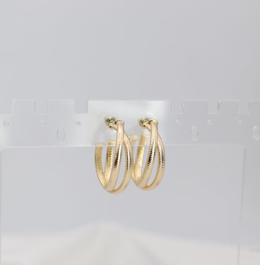 Layered Gold Hoop Earrings – Double Band Ribbed Hoops