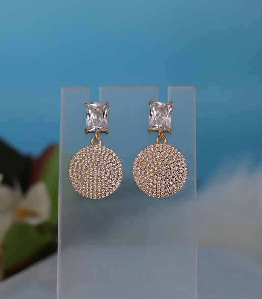 Emerald Cut CZ and Pave Disc Fashion Earrings