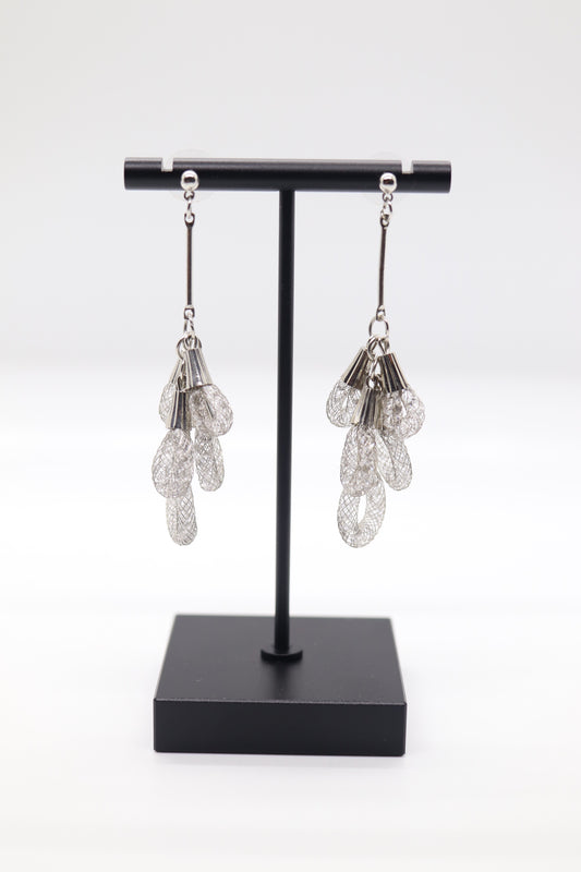 Silver Mesh Dangling Earrings with Austrian Crystals
