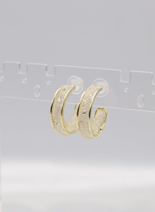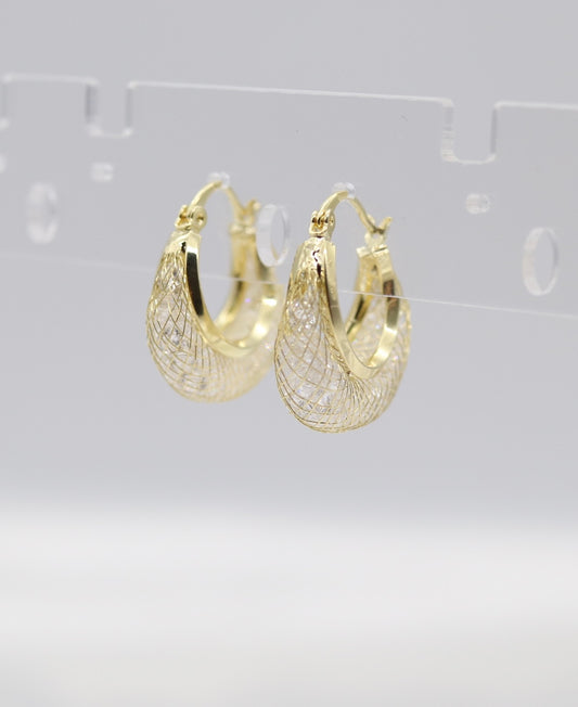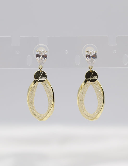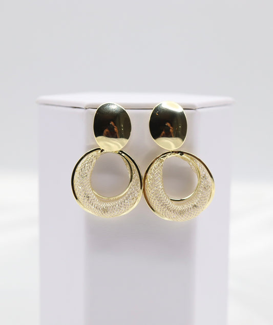 Geometric Textured Gold Drop Earrings with Crystal Studs
