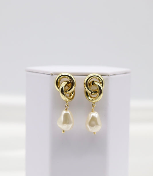 Gold Baroque Pearl Drop Jewelry Stud Earrings