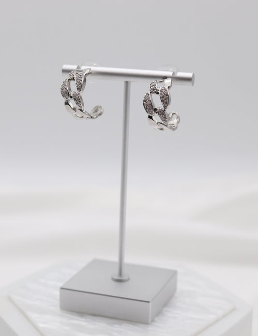 Silver CZ Chain Huggie Earrings