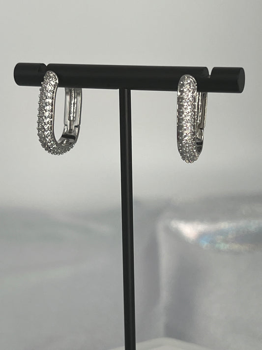 Silver CZ Pave Oval Huggie Earrings