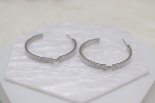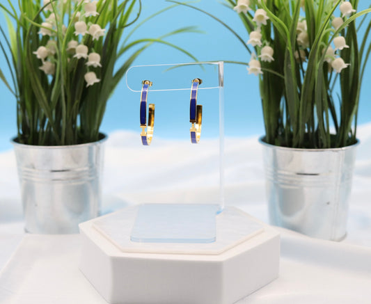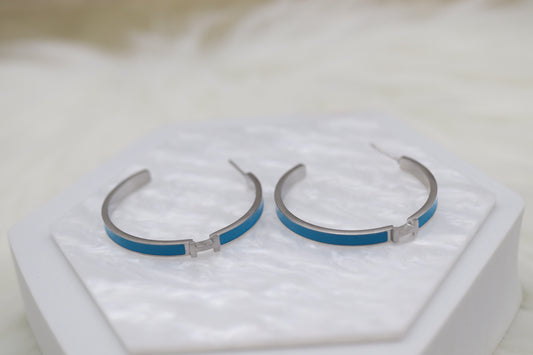 Caribbean Blue Luxury H Hoop Silver Earrings
