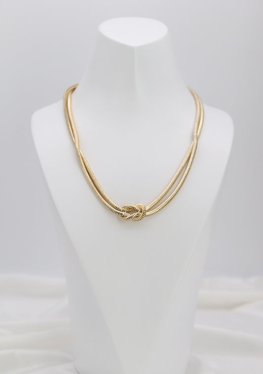 Gold Tone Double Snake Chain Knot Necklace – Modern Statement Collar