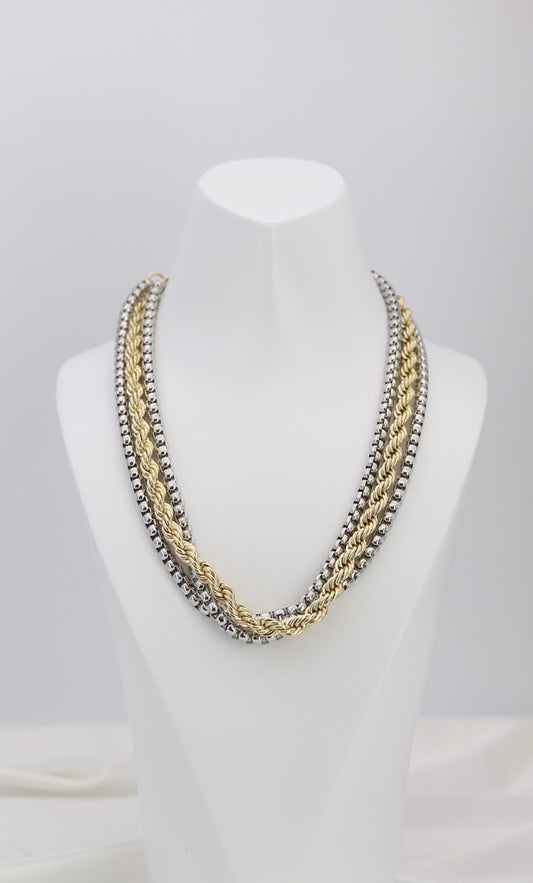 Mixed Metal Layered Rope & Beaded Chain Necklace