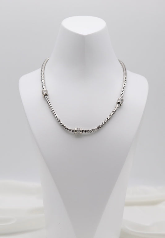Silver Tone Woven Collar Necklace with Crystal Accent Rings