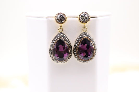 Matching Necklace and Earrings With Pear Shaped Amethyst Faceted CZ Stones