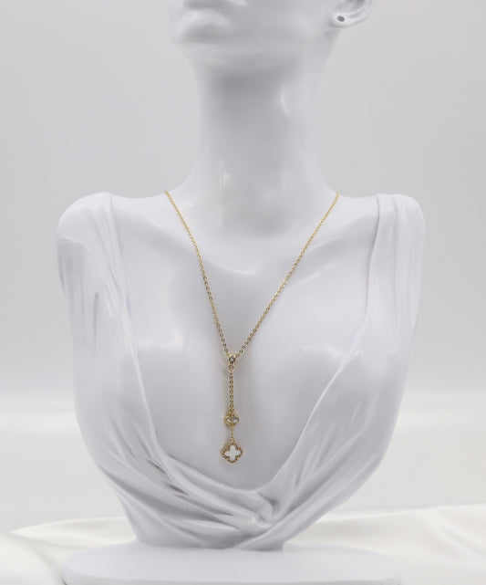 Gold Station Necklace with Irregular Clear Crystal Accents