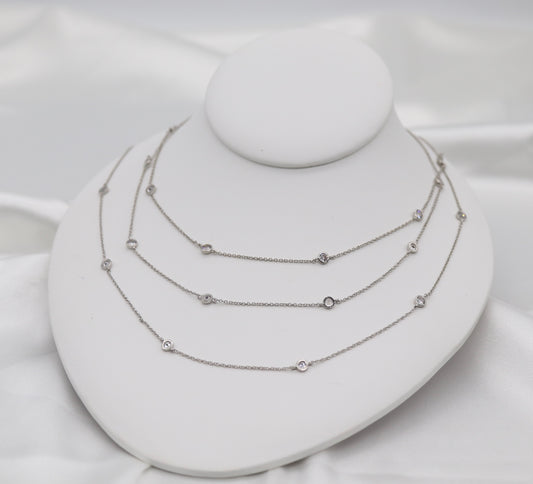 Layered Bezel Set Station Necklace With Paved CZ Bar Pendant