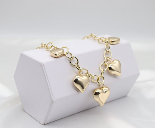 Layered Gold Dainty Pearl Station and Heart Pendant Paperclip Necklace