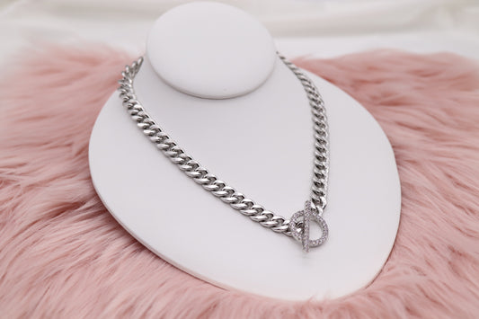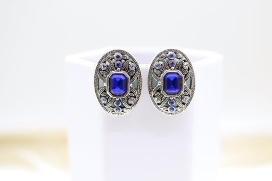 Enameled Renaissance Style With Fine Navy Blue CZ Pendant Oval Necklace With Matching Clip On Earrings