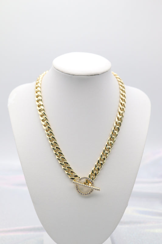 Small U Link Gold Necklace With Clover Pendant - 16 Inches