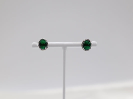 Emerald Green Cubic Zirconia Silver Post Style Earrings