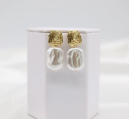 Gold Baroque Pearl Drop Jewelry Stud Earrings