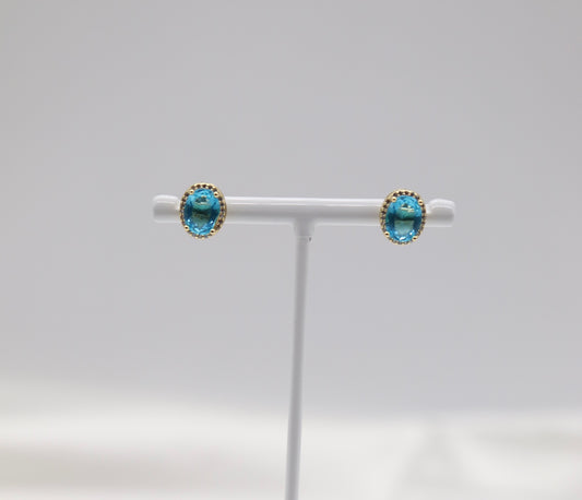 Aqua Blue Cubic Zirconia Gold Post Style Earrings