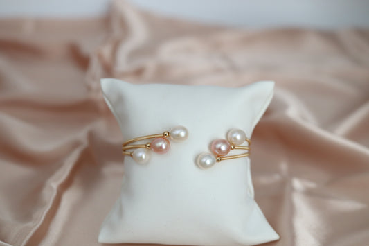 Six Fresh White and Light Pink Water Pearls with Gold Filled Wiring